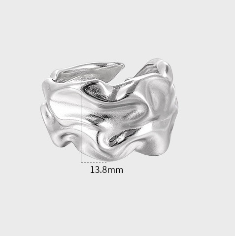 Discover the perfect blend of elegance and individuality with our Niche Personality Simple And Irregular Pleated Texture Wide S925 Sterling Silver Ring. This stunning piece is designed for the modern woman who appreciates unique style and quality craftsmanship. Crafted from high-quality S925 sterling silver, this ring features a distinctive open-mouth design that effortlessly combines sophistication with a touch of boldness. The adjustable opening ensures a comfortable fit, making it suitable for any finger size. What sets this ring apart is its captivating pleated texture that adds depth and dimension, making it a true statement piece. The stunning white gold color enhances its shine, allowing it to sparkle in any light. Whether you're dressing up for a special occasion or adding a touch of flair to your everyday outfit, this ring is the perfect accessory. Embrace your unique style and let your personality shine through with this exquisite piece. Check out the beauty of this ring below: